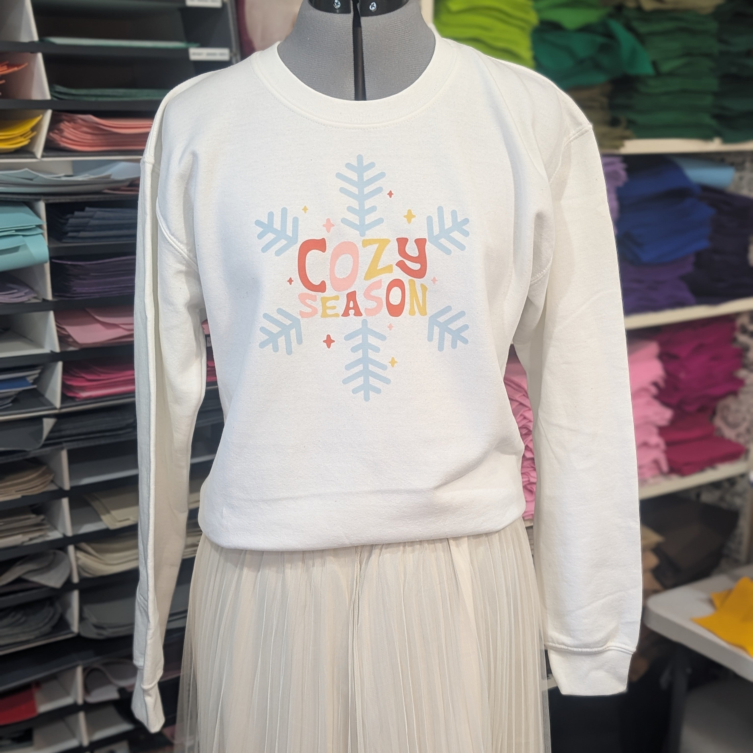 Snuggle in with this cute sweatshirt. Colors of design are as pictured.